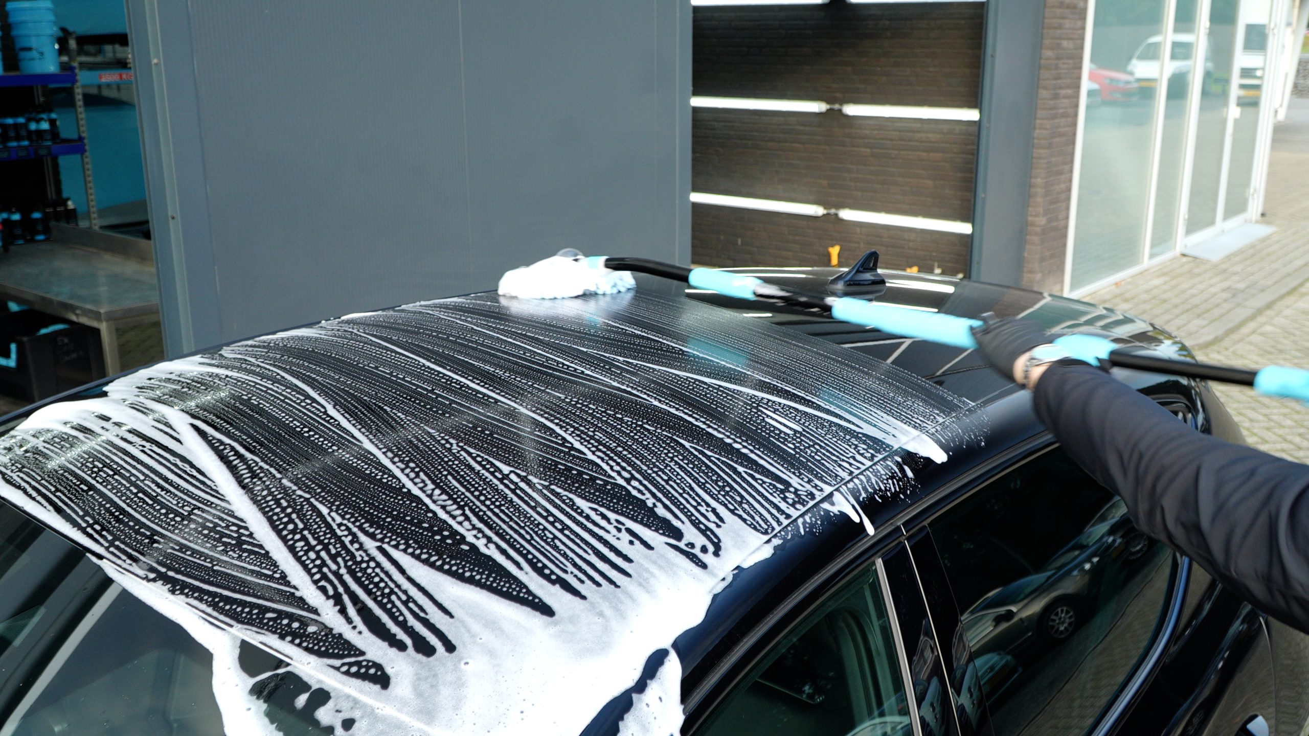 Use a clean Stipt Premium Wash Extension to wash the car from top to bottom.